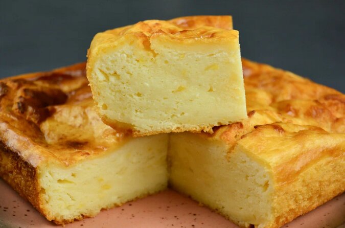 Twaróg, mleko, jajka, skórkę z cytryny i cukier zmiel za pomocą blendera do jednolitej konsystencji. Następnie dodaj mąkę i proszek do pieczenia.
