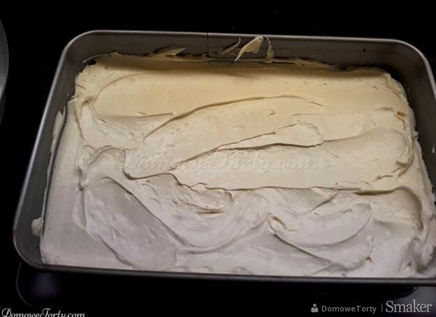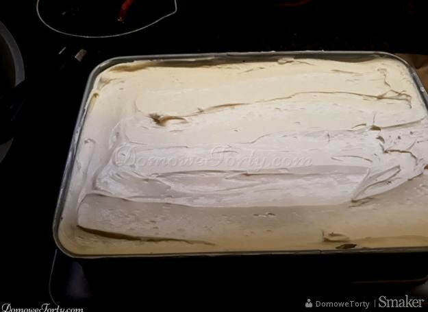 Powtórz to działanie, tzn. połóż na warstwie kremu kolejną warstwę ciasta, a na niego pozostałą część kremu, który należy dokładnie rozsmarować.