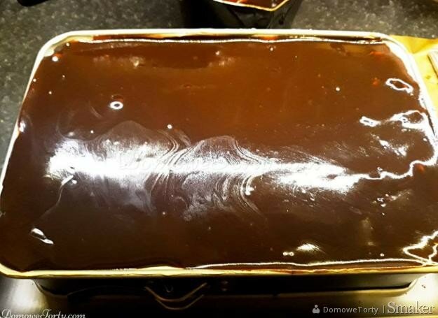 Przygotowaną polewę odstaw, żeby wystygła (ale nie stwardniała! Musi być jeszcze płynna, kiedy będziesz wykładać ją na ciasto!)