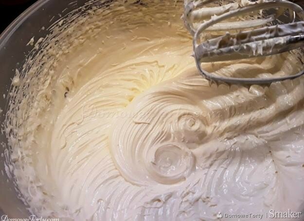Śmietanę z serkiem i cukrem włóż do jednego naczynia. Wymieszaj z dodawaniem żelatyny, aż masa stanie się jednolita i gęsta.