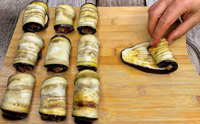 Z zaledwie 3 bakłażanów można w łatwy sposób zrobić bardzo smaczną kolację - wystarczy tylko nieco odejść od standardowych przepisów i nie smażyć bakłażan tak, jak wiele osób jest do tego przyzwyczajonych. Zamiast tego cienkie paski bakłażana należy zawinąć wraz z warzywami: dzięki właściwej mieszance przypraw nikt nawet nie zauważy, że w środku nie ma mięsa.