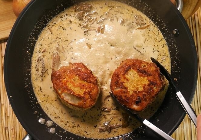 Jeżeli preferujesz smażony schab, po prostu kieszonki najpierw dobrze obsmaż na patelni, a następnie przełóż do sosu. Pamiętaj jednak, że czas duszenia powinien wówczas być odrobinę dłuższy. Niezależnie od sposobu, jaki wybierzesz, proces duszenia powinien odbywać się na małym ogniu.