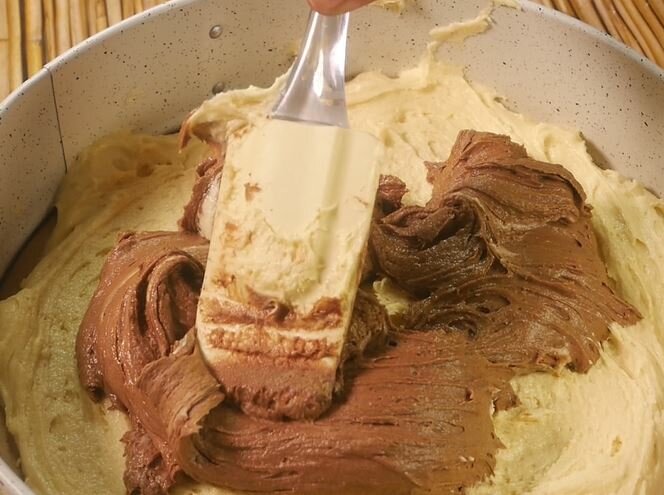 Ciasto podziel na pół i jedną część wyłóż do formy o średnicy około 28 centymetrów. Do drugiej dodaj mleko i kakao, wymieszaj. Mąkę ciemną wyłóż na jasną, tworząc fale jasno-ciemne za pomocą widelca. Wierzch jego posyp malinami i piecz w temperaturze około 200 stopni Celsjusza, przez około pół godziny.