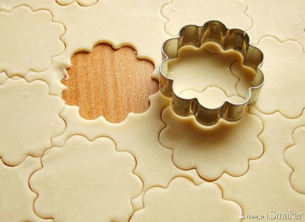 Wyjmij ciasto z lodówki, rozwałkuj na placek i powycinaj ciasteczka przy pomocy foremki.