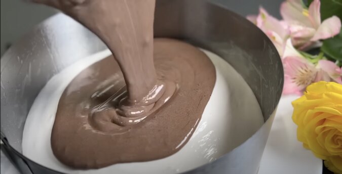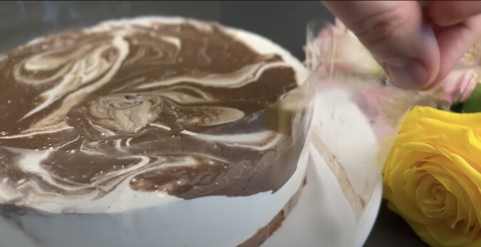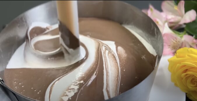 10. Delikatnie wymieszaj obie warstwy, aż powstanie piękny wzór.