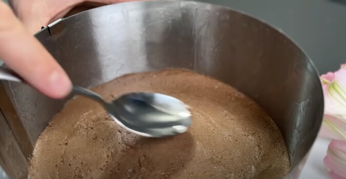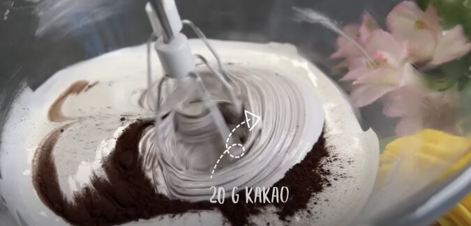 8. Do pozostałej masy (do drugiej połowy) dodaj 20 g kakao i ubij masę razem z kakao.