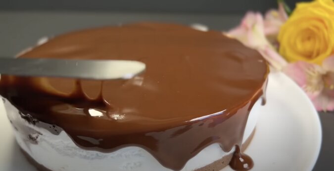 13. Przelej masę na tort i delikatnie wyrównaj z każdej strony.