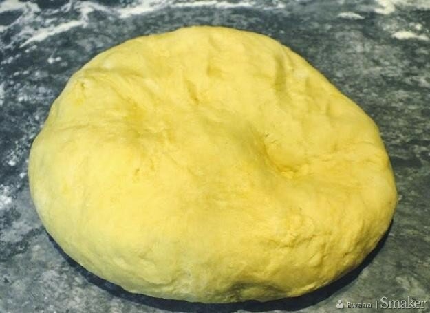 Przesiej pozostałą część mąki z solą i resztą cukru, dodaj sześć żółtek, wlej płynne, ale nie za bardzo gorące masło.