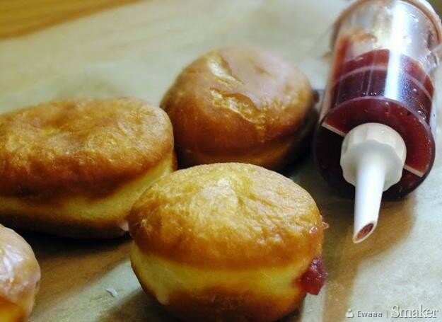 WAŻNE: Oczywiście, że nie wiadomo, ile tego dżemu już się wcisnęło. Jeśli wyciągniesz tylkę, trochę nadzienia powinno wypłynąć. Należy tu zachować umiarkowanie, żeby Twoje pączki nie były zbyt słodkie przez dużą ilość nadzienia.