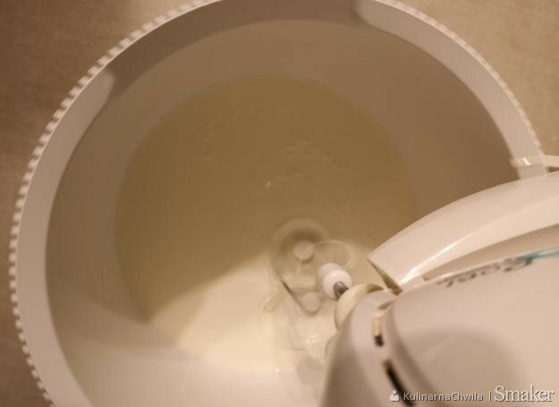 6. Ubić przy pomocy miksera jedną śmietankę.