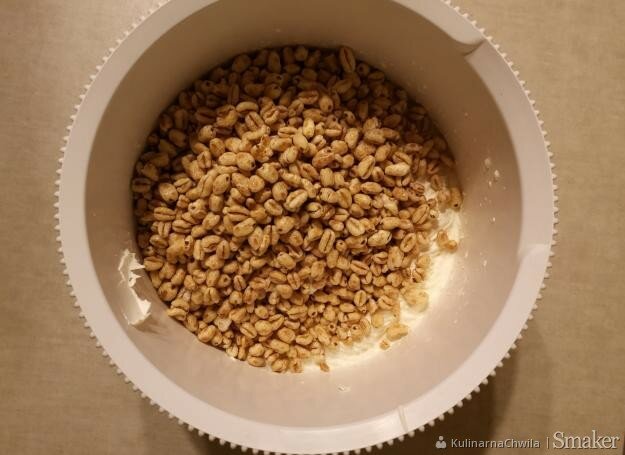 9. Do mieszaniny wsypać płatki i ostrożnie wymieszać.