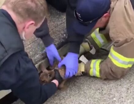 W filmie udostępnionym na Twitterze słychać płacz w tle, gdy strażak z North County Fire Authority delikatnie wyciąga go z kanału. Dołącza do niego 2 policjantów Pacifica i wspierają go.