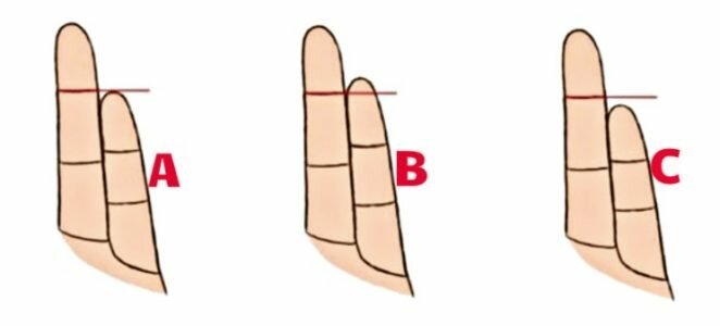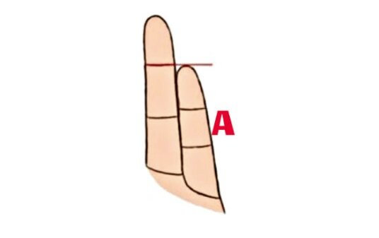 Jeśli czubek małego palca zatrzyma się na linii początkowej paliczka dalszego palca serdecznego, jesteś osobą typu A.