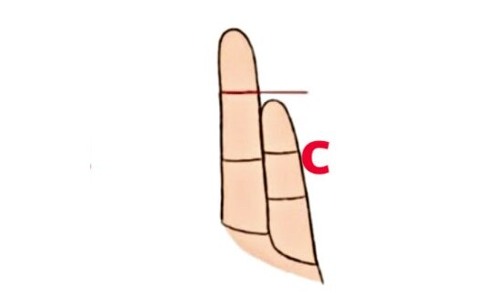 Jeśli końcówka małego palca nie osiąga linii początku ostatniej kości palca serdecznego, oznacza to, że jesteś osobą typu C.