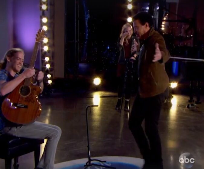 Lionel nie czekał na koniec piosenki. Wstał, wszedł na scenę i dał Davidowi ogromny uścisk.
