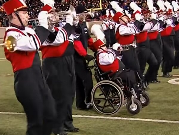 „Okej, ale, jak mam niby maszerować?” Patrick zaśmiał się. Jego tata był mniej sceptyczny. Wpadł on na pomysł, by być jego nogami w orkiestrze maszerującej.
