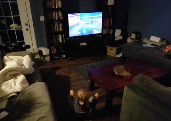 Gdy reszta ogląda urocze kreskówki lub powtórki „Barney & Friends”, ono woli coś innego. Dziecko bawiło się w kuchni, gdy nagle zainteresowało się czymś bardziej ekscytującym. Mama kieruje kamerę na telewizor, przewija kanały i zatrzymuje na jednym z nich.