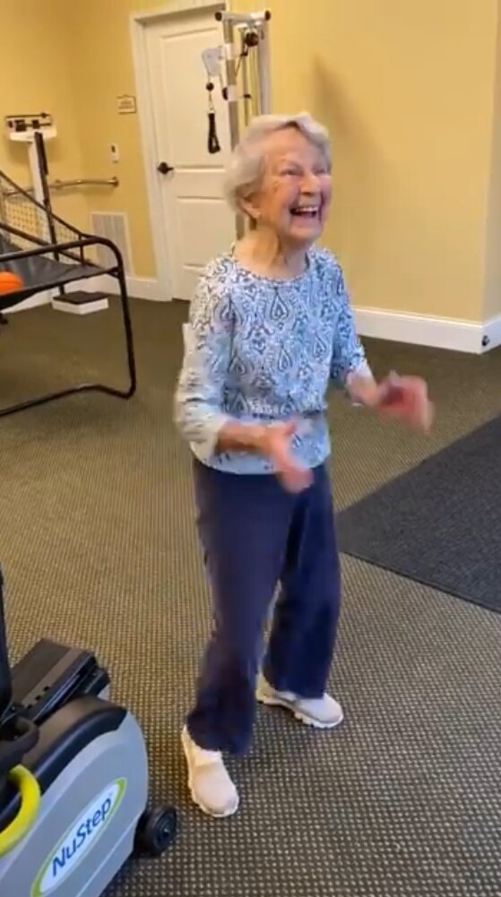 91-letnia Julia Lewis to mistrzynia obchodów specjalnych okazji. Zademonstrowała to, gdy dotarła do końca fizykoterapii i rehabilitacji w domu opieki zdrowotnej Golden Age w Greenwood i nie mogła powstrzymać radości!