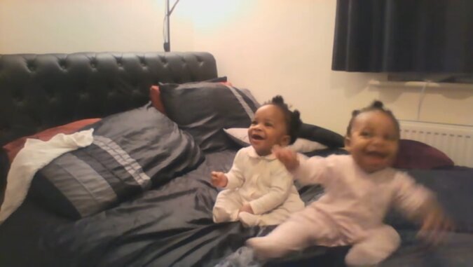 Dwoje ośmiomiesięcznych dzieci nie może powstrzymać się od śmiechu i wysiedzieć na miejscu, gdy ich mama zaczyna śpiewać. Ich ruchy z pewnością sprawią, że się uśmiechniesz.