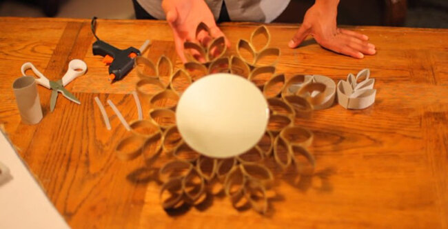 Prawie w każdej rolce papieru toaletowego lub ręcznika papierowego jest kartonowa rolka, którą zwykle wyrzucamy po zużyciu papieru. Jednak gdy zachowasz ją, możesz stworzyć wyjątkową i bardzo piękną dekorację na ścianę. Wykonanie tego jest bardzo proste, a uzyskany na końcu wynik zależy całkowicie od Twojej wyobraźni.
