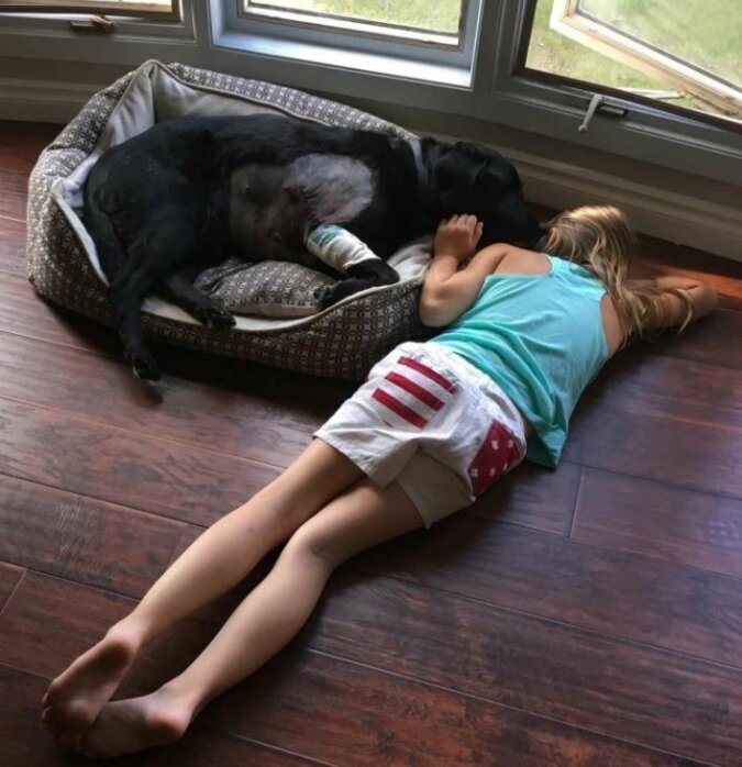 10 lat później stwierdzono, że pies ma guzy łagodne i musi przejść operację. Kiedy pies wracał do zdrowia, dziewczyna nie zostawiła go samego nawet przez minutę.