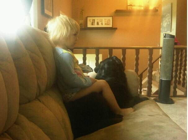 Dziewczynka i pies stały się nierozłączne, nawet razem oglądały bajki.
