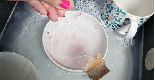 Wystarczy zamoczyć naczynia razem z torebką po herbacie i zostawić tak na noc. Herbata zadziała swoje i rozpuści nawet tłuszcz! Wszystko za sprawą taniny, która występuje w herbacie.