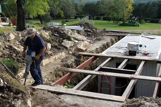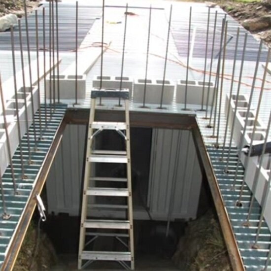 Do środka wylał również beton i zrobił schody, tak aby można było się dostać do środka z powierzchni ziemi.