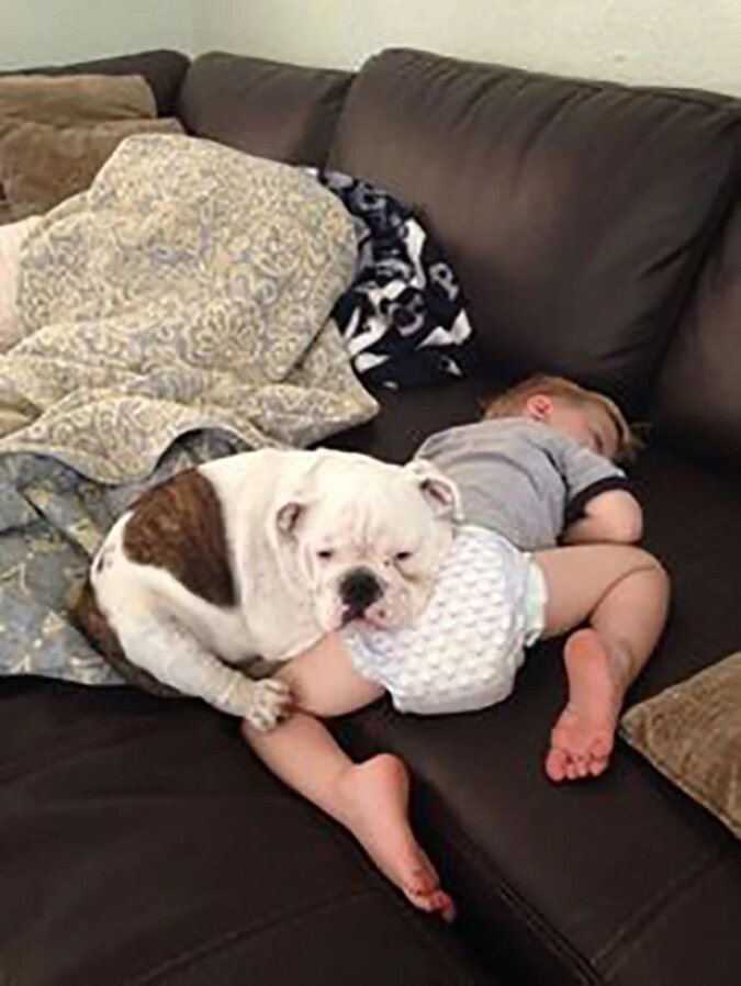 Nie ma nic ładniejszego niż słodkie i niewinne dziecko skulone, gotowe do przytulania. Ale trochę bardziej podobają nam się ich urocze szczenięta gotowe do bycia poduszkami.