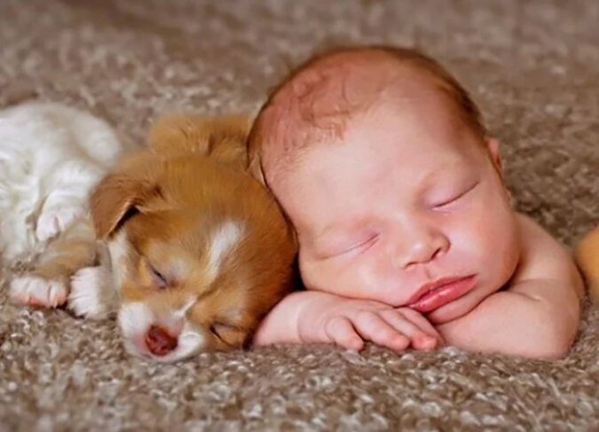 Ale nawet jeśli nie drzemią, wystarczy zwykły uścisk lub uśmiech z duetem szczeniaka / dziecka, aby stopić serca!