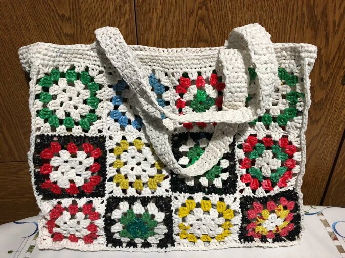Przecież z plastikowych torebek można zrobić torbę na drutach, aby później iść z nią na zakupy do supermarketu czy do sklepu z artykułami spożywczymi.