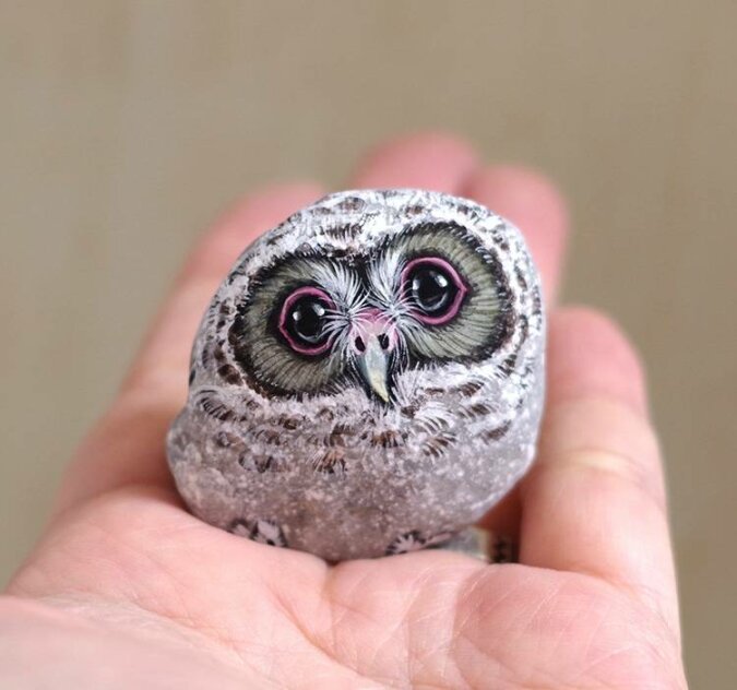 Zainspirowały ją naturalne kształty kamieni, więc zaczęła je malować i zamieniać w wyglądające bardzo realistycznie zwierzęta.
