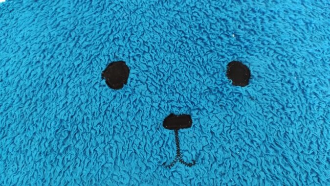 Najpierw zrobiłam twarz. Zaszyła oczy i nos zygzakiem na maszynie do szycia. Do tego również nadaje się haft ręczny.