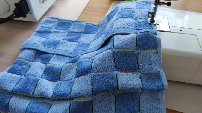 Właśnie z takich ręczników uszyłam sobie zabawną czapeczkę z uszami i opaskę do spania w ciągu dnia lub w podróży.