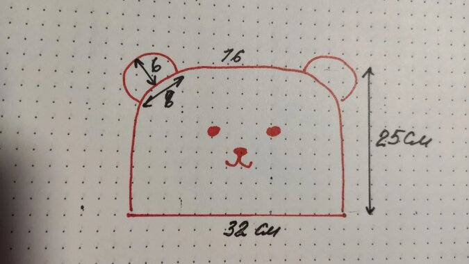 Połączyłam 2 główne części wzoru z twarzą do wewnątrz, przymocowałam gumkę i zszyłam, pozostawiając miejsce na wywrócenie.