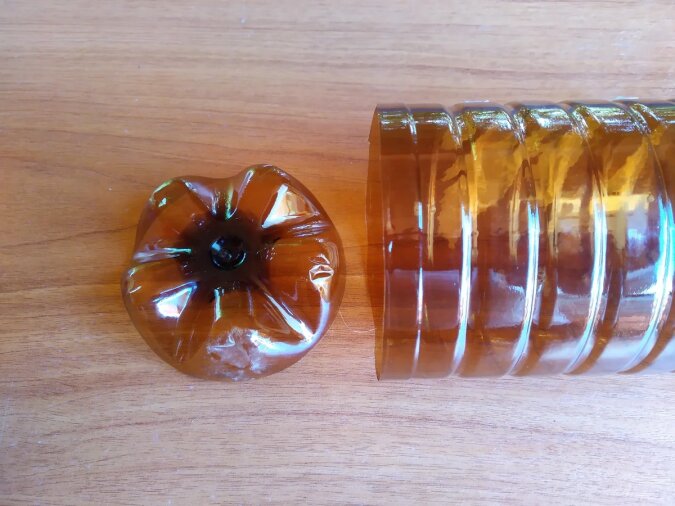 Następnie należy odciąć dno butelki, jak można najbliżej końca.