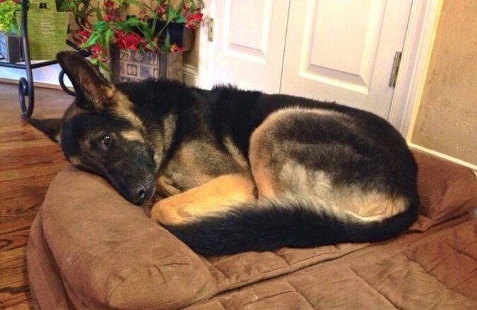 Po kilku tygodniach zwierzę zaczęło się zachowywać inaczej. Co noc, kiedy właściciele szli spać, pies stał pod drzwiami ich sypialni i obserwował ich całą noc. Każdego ranka po przebudzeniu się jego rodzina widziała go czuwającego. Nie spał całą noc, tylko po ty by się na nich patrzeć. Po paru razach zaczęli się oni niepokoić. Nie obawiali się, jego, lecz obawiali się, że może on być na coś chory. Postanowili więc udac się z nim do weterynarza.
