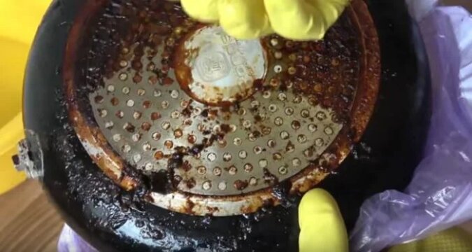 Więc jeśli patelnia ma plastikowy uchwyt, pierwszą rzeczą, którą należy zrobić, jest odkręcenie go. W tym przypadku pomoże zwykły śrubokręt. Rączkę czyści się oddzielnie od tłuszczu za pomocą gąbki (również metalowej) przy użyciu detergentu i ciepłej wody. Tylko patelnia zostanie oczyszczona z tłuszczu „metodą ludową”. W tym celu należy wziąć 2-3 woreczków celofanowych i upewnić się, że są szczelne, a następnie złożyć je jeden w drugi.