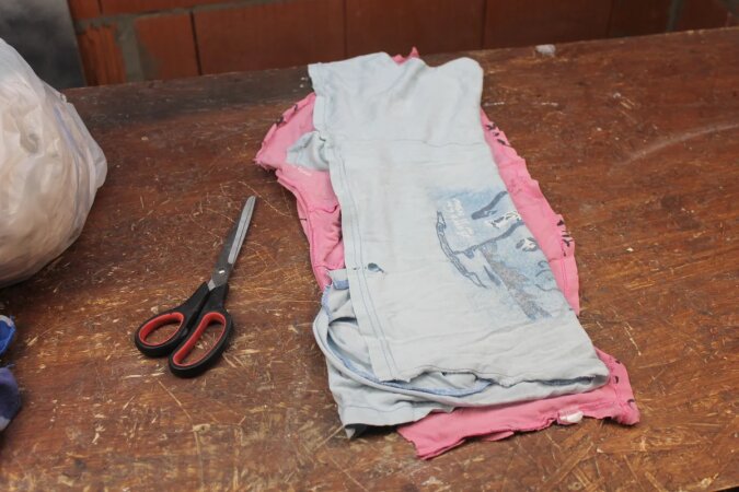 Pierwszą rzeczą, której potrzebujemy, są zwykłe szmaty. W swoim garażu trzymam specjalną torbę, w której przechowuję stare ubrania na szmaty.