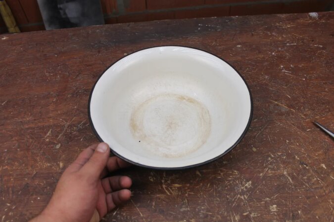 Bierzemy dowolne stare wiadro lub głęboką miskę.