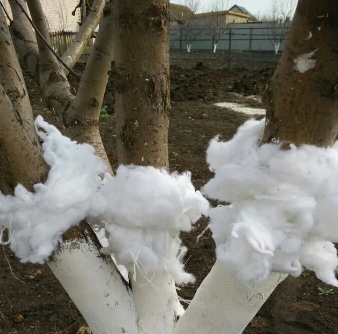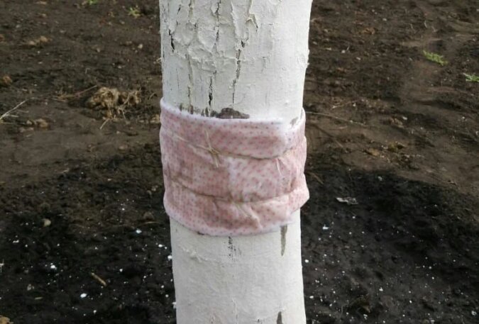 Na początku w dolnej części pnia nawijamy szmatę przesiąkniętą olejem, przywiązujemy ją liną. Wychodzi nam coś w rodzaju pasa. Nie należy ściskać liny zbyt mocno, szczególnie na młodych drzewach.