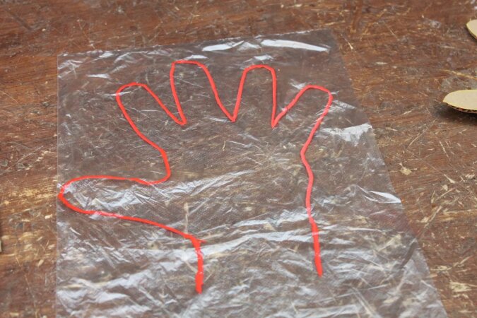 Jak w dzieciństwie wyciągamy rękę. Kiedy robimy rękawiczki, najlepiej jest zrobić je trochę większe, aby było wygodniej je zakładać.