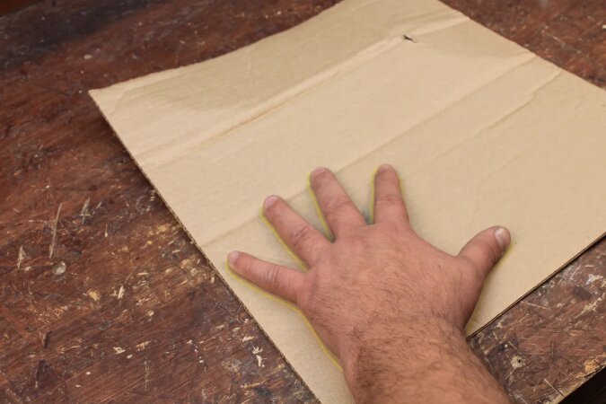 Po wykonaniu tej czynności potrzebujemy tektury na szablon.