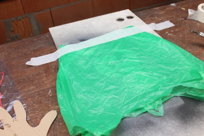 Lepiej jest użyć zwykłej torebki, na przykład z supermarketu. Układamy na płaskiej powierzchni, wyprostowujemy i mocujemy taśmą.