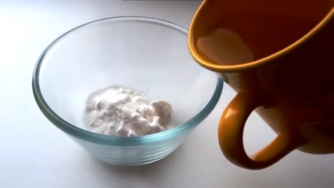 1. Będziesz potrzebować sody oczyszczonej. Wsyp dwie łyżki sody do miski. Wlej odrobinę wody i dobrze wymieszaj. Konieczne jest uzyskanie niezbyt płynnej emulsji. Spróbuj osiągnąć konsystencję kaszy.