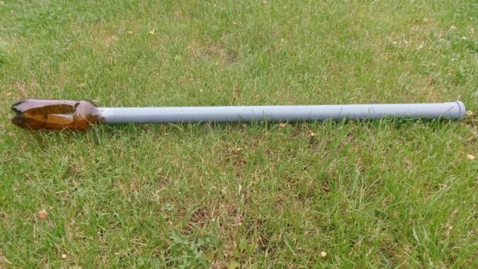 Do naszego urządzenia dołączamy rurę. Aby to zrobić, odkręć korek w butelce, nałóż rurkę na szyję-50 mm średnicy. Ona jest idealna. Mocujemy taśmą klejącą. Szyjka butelki może być trochę przycięta, aby stała się szersza.