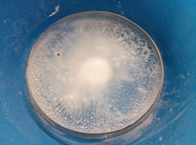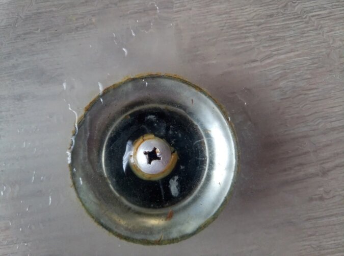 Wlewamy nadtlenek wodoru na pokrywkę. Powinien być równomiernie rozprowadzony po pokrywce. Pozostawiamy na 10 minut.