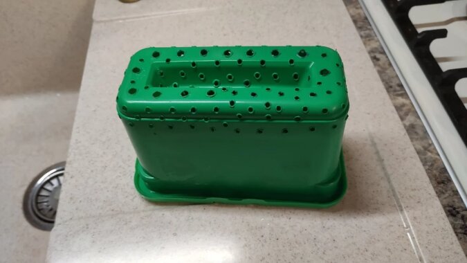 Na dole musisz zrobić dziury (podobnie jak w sitku). Aby to zrobić rozgrzewam gwóźdź (używając kombinerek) i podgrzewam na palniku. Gorący gwóźdź szybko stopi plastik.