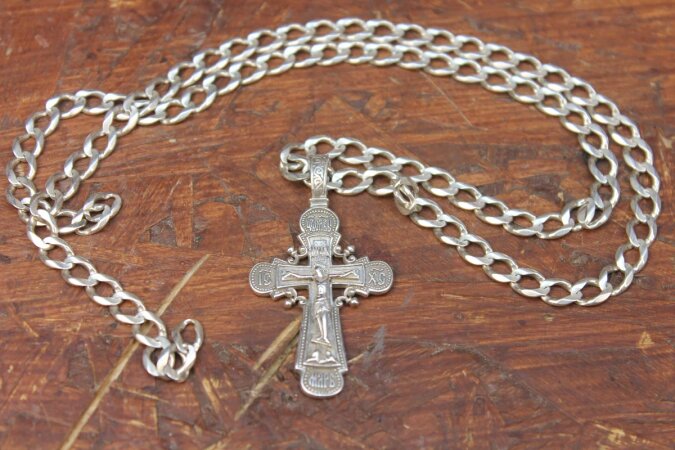 Umieszczamy tam srebrną biżuterię, w tym przypadku krzyżyk z łańcuszkiem.