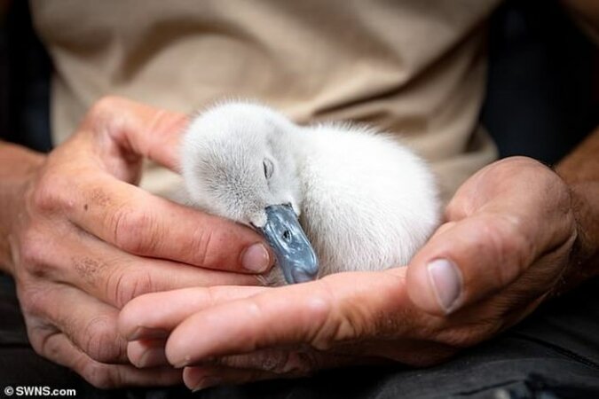 Po badaniu lekarza weterynarii pisklakowi nastawiono skrzydło i przepisano dietę. Okazało się, że jest to dziecko dzikiego łabędzia. Pisklę wymagało wiele miłości i troski.